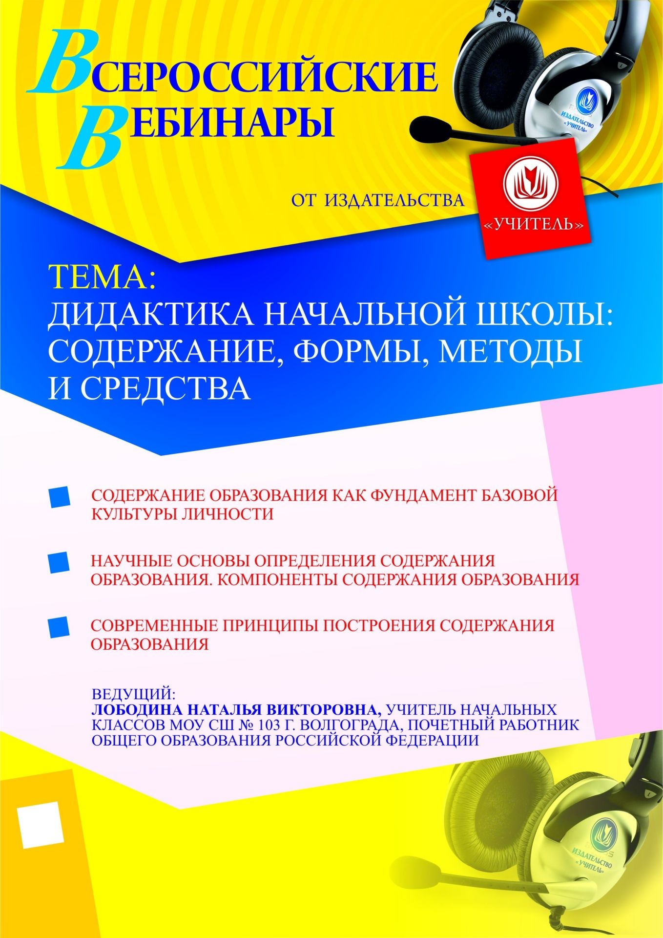 Приглашаем учителей начальных классов, заместителей руководителя по УМР, руководителей методических объединений принять участие в offline-вебинаре «Дидактика начальной школы: содержание, формы, методы и средства».