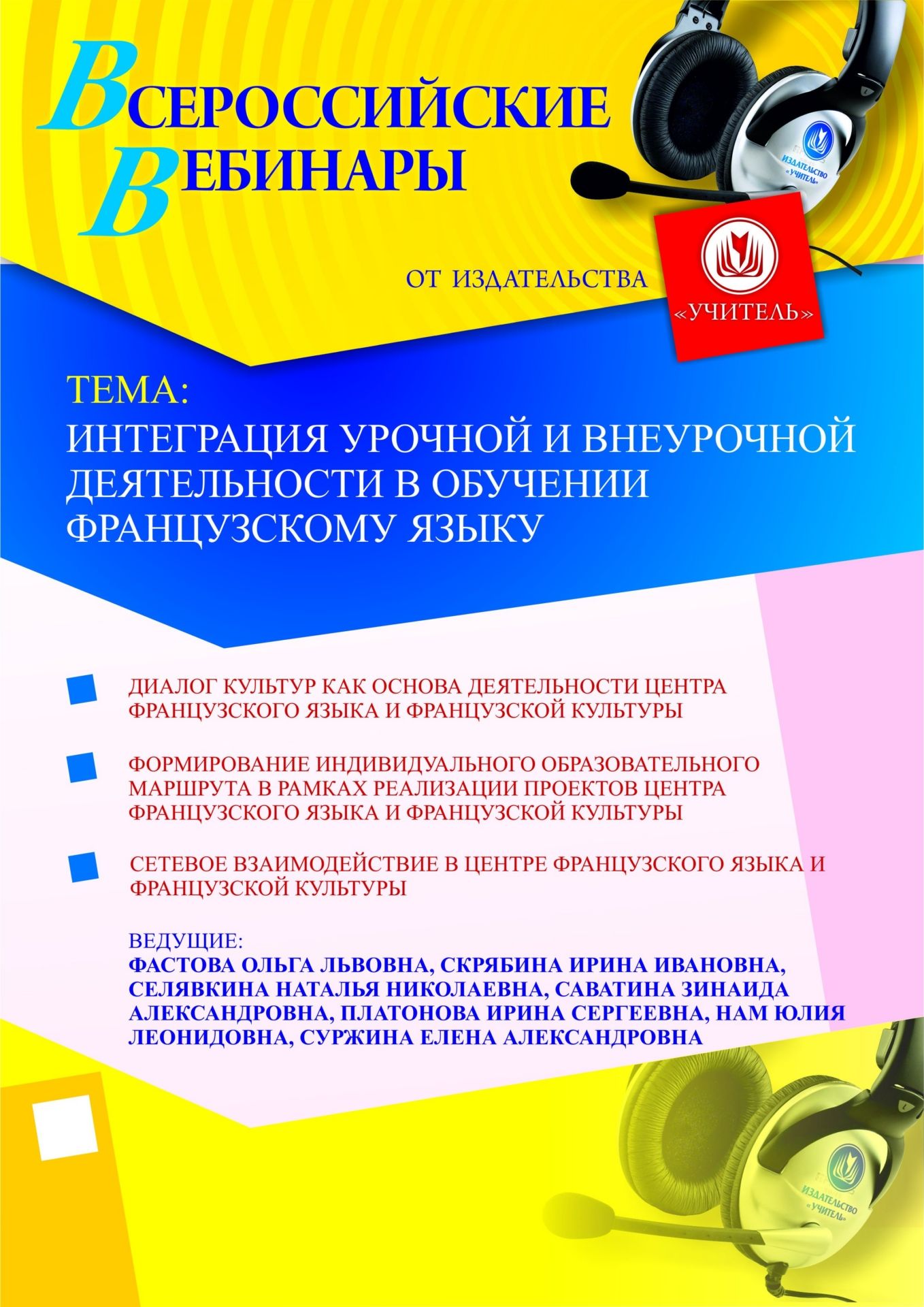 Приглашаем учителей иностранного языка, руководителей методических объединений учителей иностранных языков принять участие в offline-вебинаре «Интеграция урочной и внеурочной деятельности в обучении французскому языку».
