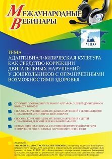 Международный вебинар Адаптивная физическая культура как средство коррекции двигательных нарушений у дошкольников с ограниченными возможностями здоровья
