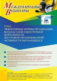 Международный вебинар Эффективные формы организации внеклассной и внеурочной деятельности, досуговой организованной активности обучающихся