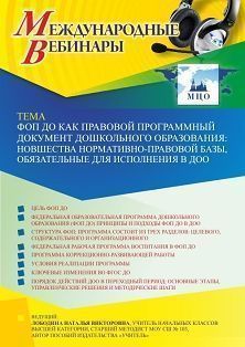 Международный вебинар ФОП ДО как правовой программный документ дошкольного образования: новшества нормативно-правовой базы, обязательные для исполнения в ДОО