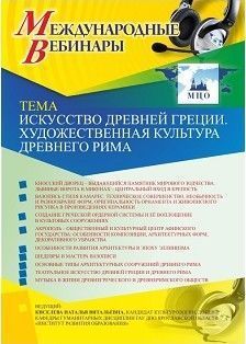 Международный вебинар "Искусство Древней Греции. Художественная культура Древнего Рима"
