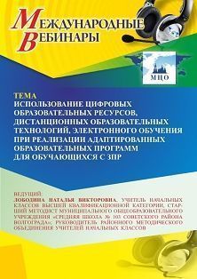 Международный вебинар Использование цифровых образовательных ресурсов, дистанционных образовательных технологий, электронного обучения при реализации адаптированных образовательных программ для обучающихся с ЗПР