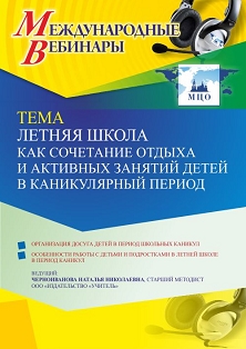 Международный вебинар Летняя школа как сочетание отдыха и активных занятий детей в каникулярный период