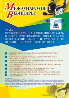 Международный вебинар Метафорические ассоциативные карты в работе педагога-психолога с семьей: детско-родительские и супружеские отношения, возрастные кризисы