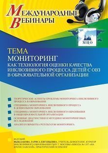 Международный вебинар Мониторинг как технология оценки качества инклюзивного процесса детей с ОВЗ в образовательной организации