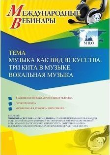 Международный вебинар "Музыка как вид искусства. Три кита в музыке. Вокальная музыка"