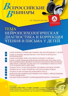 Международный вебинар Нейропсихологическая диагностика и коррекция чтения и письма у детей