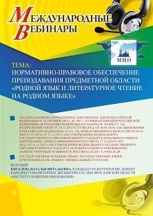 Международный вебинар Нормативно-правовое обеспечение преподавания предметной области "Родной язык и литературное чтение на родном языке"