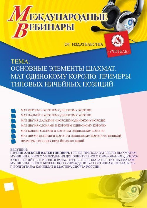 Международный вебинар Основные элементы шахмат. Мат одинокому королю. Примеры типовых ничейных позиций