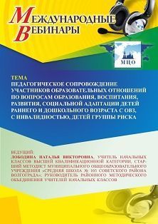 Международный вебинар Педагогическое сопровождение участников образовательных отношений по вопросам образования, воспитания, развития, социальной адаптации детей раннего и дошкольного возраста с ОВЗ, с инвалидностью, детей группы риска