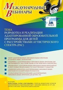 Международный вебинар Разработка и реализация адаптированной образовательной программы для детей с расстройствами аутистического спектра (РАС)