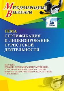 Международный вебинар Сертификация и лицензирование туристской деятельности