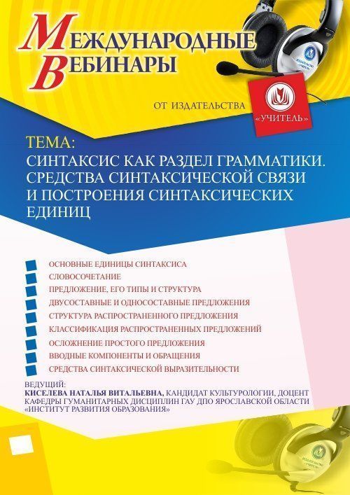 Международный вебинар "Синтаксис как раздел грамматики. Средства синтаксической связи и построения синтаксических единиц"