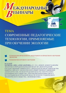 Международный вебинар Современные педагогические технологии, применяемые при обучении экологии