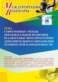 Международный вебинар Современные тренды образовательной политики, реализуемые через программы дополнительного образования технической направленности