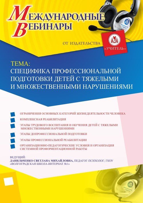 Международный вебинар Специфика профессиональной подготовки детей с тяжелыми и множественными нарушениями