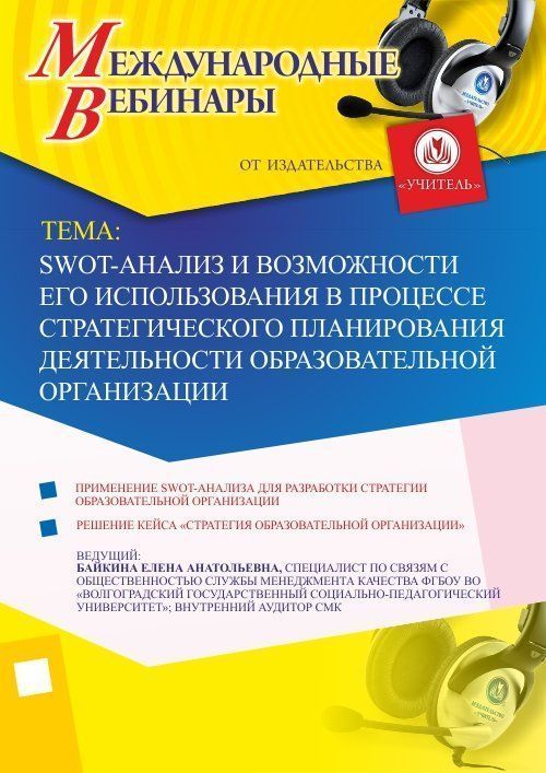 Международный вебинар "SWOT-анализ и возможности его использования в процессе стратегического планирования деятельности образовательной организации"