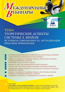 Международный вебинар Теоретические аспекты системы Л. Брайля: история и современность, актуализация практики применения