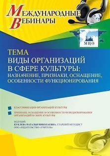 - Курс Международный вебинар Виды организаций в сфере культуры: назначение, признаки, оснащение, особенности функционирования | Маркетплейс онлайн образования Edwica