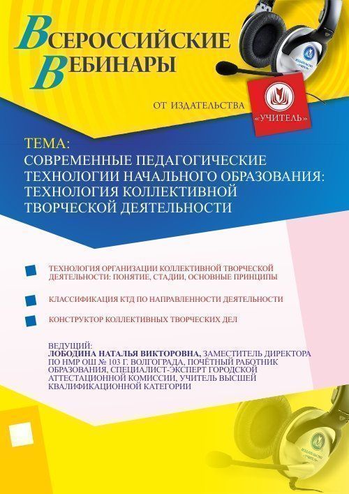 Приглашаем учителей, методистов, педагогов дополнительного образования, вожатых, воспитателей принять участие в offline-вебинаре «Современные педагогические технологии начального образования: технология коллективной творческой деятельности».