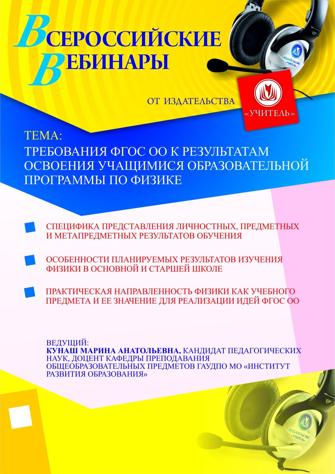 Приглашаем учителей и преподавателей физики образовательных организаций, заместителей руководителя по учебно-методической работе, руководителей методических объединений принять участие в offline-вебинаре «Требования ФГОС ОО к результатам освоения учащимися образовательной программы по физике».