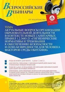 Вебинар Актуальные вопросы организации образовательной деятельности в контексте новых санитарных правил 1.2.3685-21 “Гигиенические нормативы и требования к обеспечению безопасности и (или) безвредности для человека факторов среды обитания”