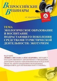 Вебинар Экологическое образование и воспитание подрастающего поколения средствами туристической деятельности: экотуризм