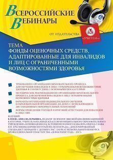 Вебинар Фонды оценочных средств, адаптированные для инвалидов и лиц с ограниченными возможностями здоровья