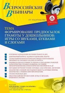 Вебинар Формирование предпосылок грамоты у дошкольников: игры со звуками, буквами и слогами