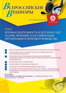 Вебинар Игровая деятельность в детском саду: задачи, функции, классификация, организация и приемы руководства