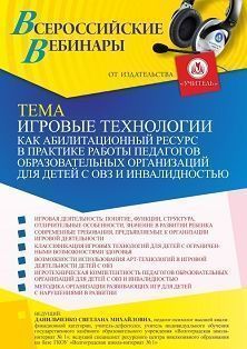 Вебинар Игровые технологии как абилитационный ресурс в практике работы педагогов образовательных организаций для детей с ОВЗ и инвалидностью