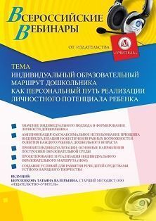 Вебинар Индивидуальный образовательный маршрут дошкольника как персональный путь реализации личностного потенциала ребенка