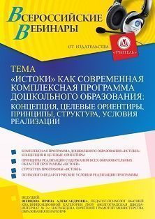 Вебинар “Истоки” как современная комплексная программа дошкольного образования: концепция, целевые ориентиры, принципы, структура, условия реализации