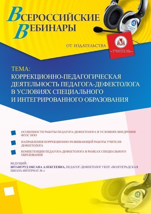 Вебинар Коррекционно-педагогическая деятельность педагога-дефектолога в условиях специального и интегрированного образования