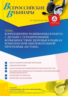 Вебинар Коррекционно-развивающая работа с детьми с ограниченными возможностями здоровья в рамках комплексной образовательной программы “Истоки”