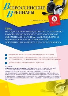 Вебинар Методические рекомендации по составлению и оформлению психолого-педагогической документации в ОО: план самообразования, тематические планы мероприятий, документация кабинета педагога-психолога