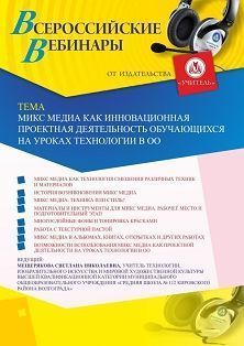 Вебинар Микс Медиа как инновационная проектная деятельность обучающихся на уроках технологии в ОО