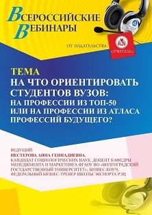 Вебинар На что ориентировать студентов ВУЗов: на профессии из ТОП-50 или на профессии из Атласа профессий будущего?