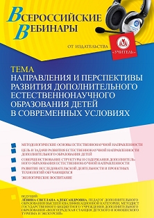 Вебинар Направления и перспективы развития дополнительного естественнонаучного образования детей в современных условиях