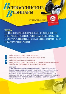Вебинар Нейропсихологические технологии в коррекционно-развивающей работе с обучающимися с нарушениями речи и коммуникации