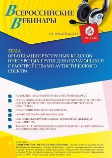 Вебинар Организации ресурсных классов и ресурсных групп для обучающихся с расстройствами аутистического спектра