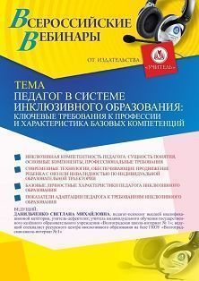 Вебинар Педагог в системе инклюзивного образования: ключевые требования к профессии и характеристика базовых компетенций