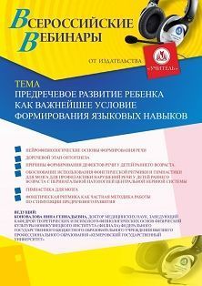 Вебинар Предречевое развитие ребенка как важнейшее условие формирования языковых навыков