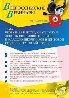 Вебинар Проектная и исследовательская деятельность дошкольников и младших школьников в цифровой среде: современный подход