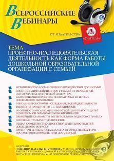 Вебинар Проектно-исследовательская деятельность как форма работы дошкольной образовательной организации с семьей
