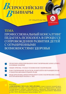 Вебинар Профессиональный консалтинг педагога-психолога в процессе сопровождения развития детей с ограниченными возможностями здоровья
