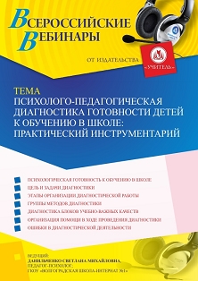 Вебинар Психолого-педагогическая диагностика готовности детей к обучению в школе: практический инструментарий