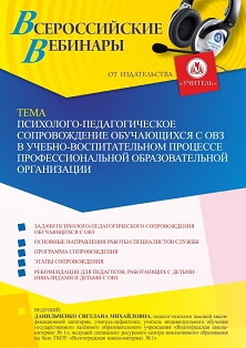 Вебинар Психолого-педагогическое сопровождение обучающихся с ОВЗ в учебно-воспитательном процессе профессиональной образовательной организации