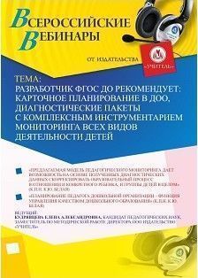 Вебинар Разработчик ФГОС ДО рекомендует: карточное планирование в ДОО, диагностические пакеты с комплексным инструментарием мониторинга всех видов деятельности детей